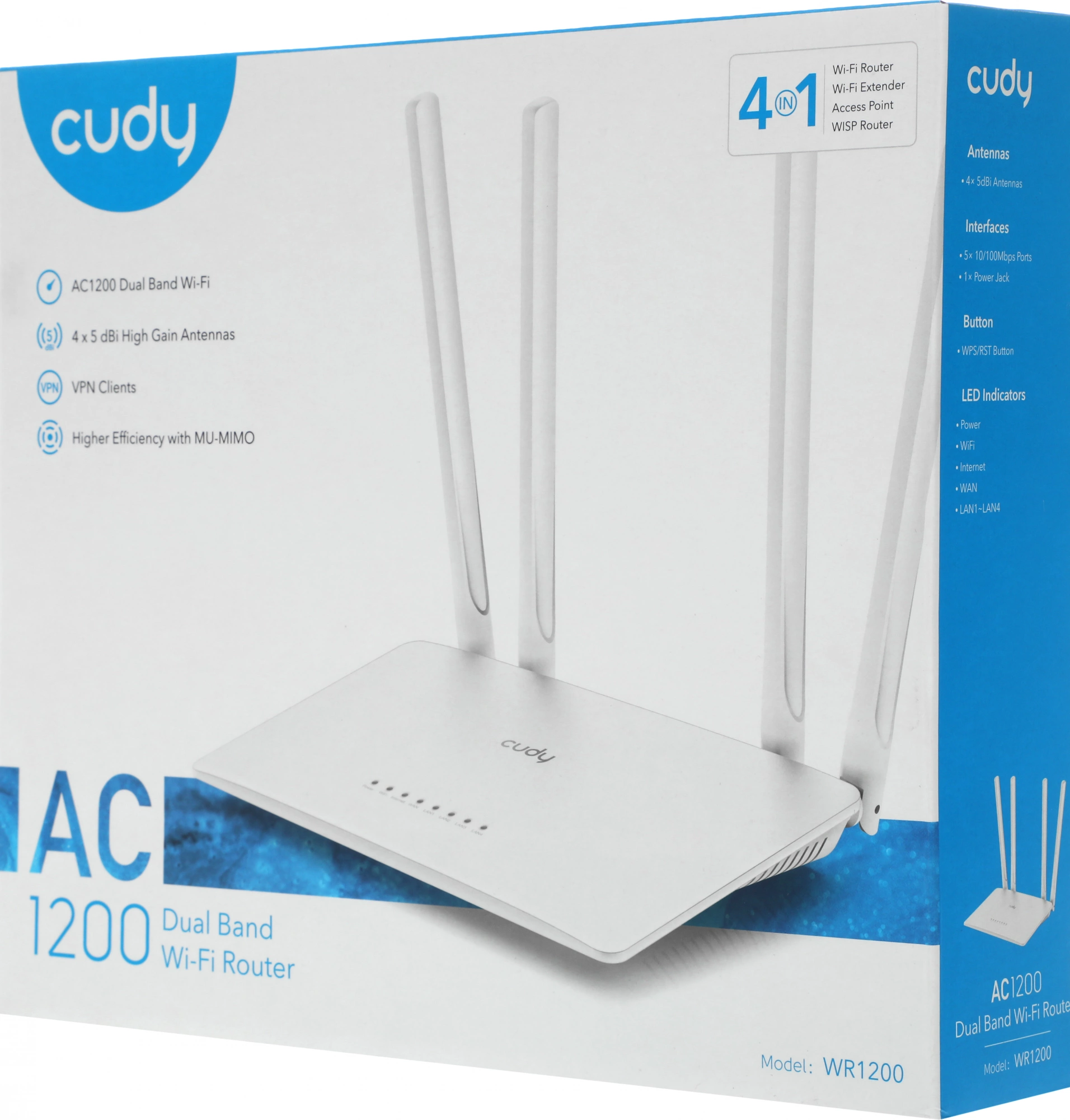 | Комплектация | Маршрутизатор Wi-Fi AC1200, сетевой адаптер питания от 220В (АС), RJ45 Ethernet-кабель, краткое руководство по установке. |