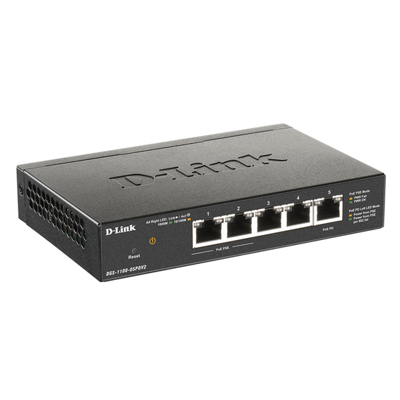 Коммутатор D-link DGS-1100-05PDV2/A1A EasySmart L2 Switch 4х1000Base-T (2x1000Base-T PoE), 1x1000Base-T PD PoE, PoE Budget 18W, PD PoE power only