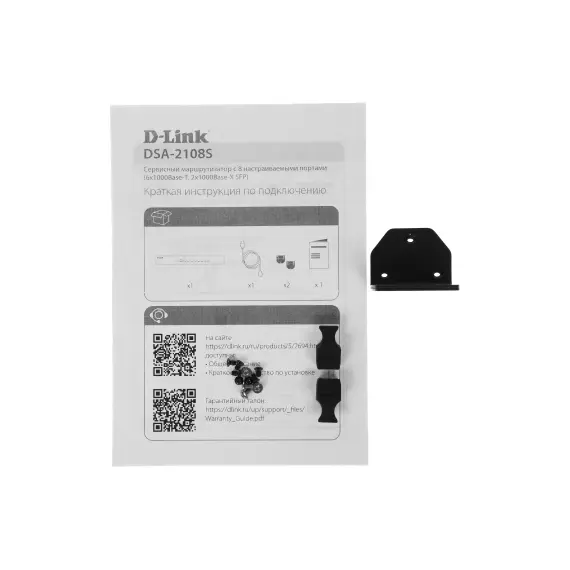 | Комплектация | Маршрутизатор DSA-2108S, кабель питания, 2 крепежных кронштейна для установки в 19-дюймовую стойку, документ «Краткое руководство по установке» (буклет). |