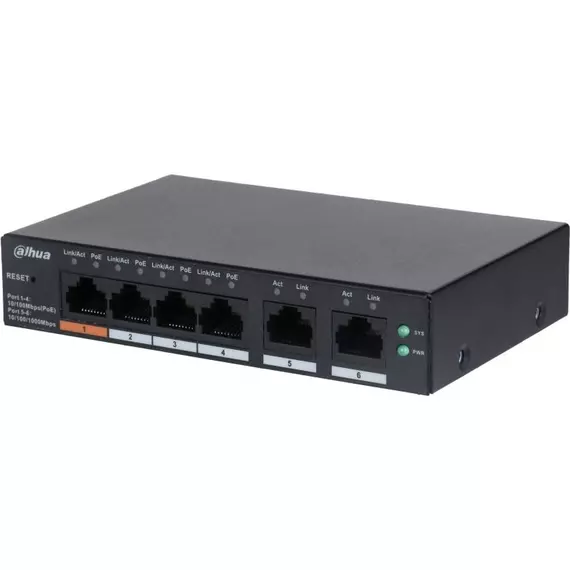 Коммутатор Dahua DH-CS4006-4ET-60 (L2) 4x100Мбит/с 2xКомбо(1000BASE-T/SFP) 30W управляемый