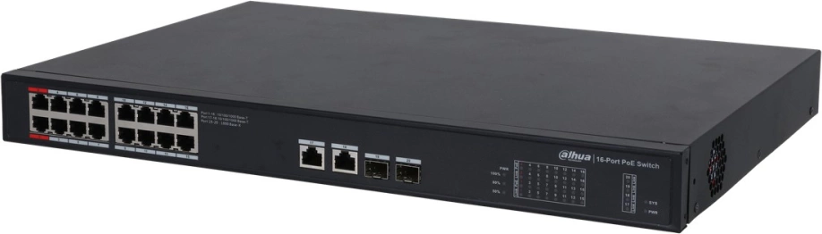 Коммутатор Dahua DH-PFS3220-16GT-240 (L2) 18x1Гбит/с 2SFP 16PoE 240W неуправляемый