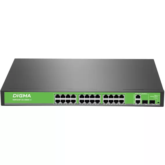 Коммутатор Digma DSP224F-2C-R400 V1 (L2) 24x100Мбит/с 2xКомбо(1000BASE-T/SFP) 24PoE 24PoE+ 400W неуправляемый