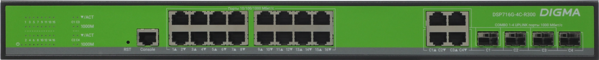 Коммутатор Digma DSP716G-4C-R300 (L2+) 16x1Гбит/с 4xКомбо(1000BASE-T/SFP) 300W управляемый