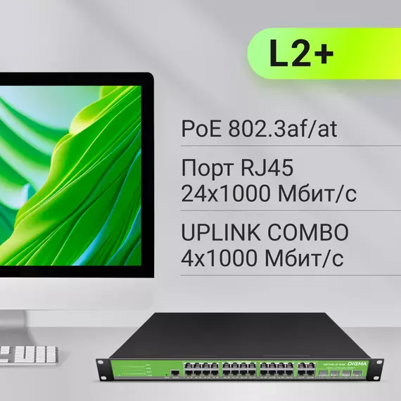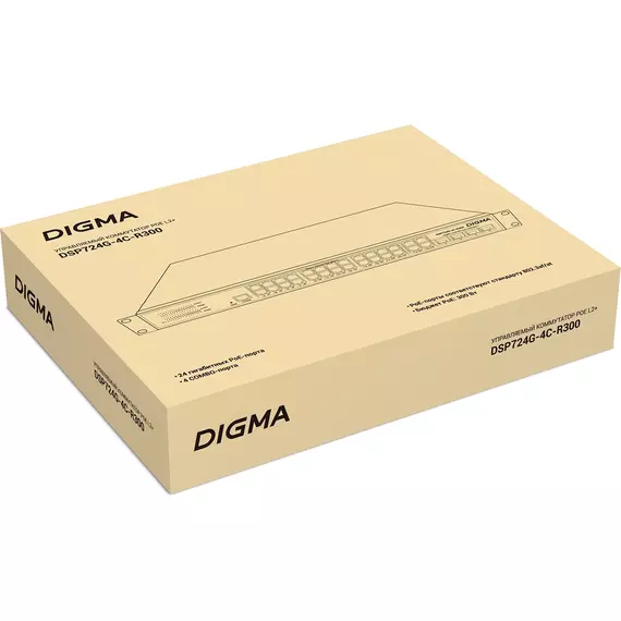 Коммутатор Digma DSP724G-4C-R300 (L2+) 24x1Гбит/с 4xКомбо(1000BASE-T/SFP) 24PoE 24PoE+ 300W управляемый