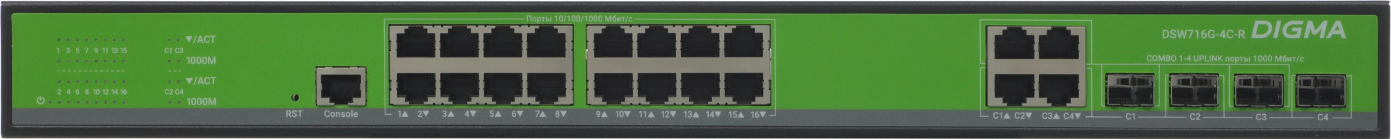 Коммутатор Digma DSW716G-4C-RTL (L2+) 16x1Гбит/с 4xКомбо(1000BASE-T/SFP) управляемый