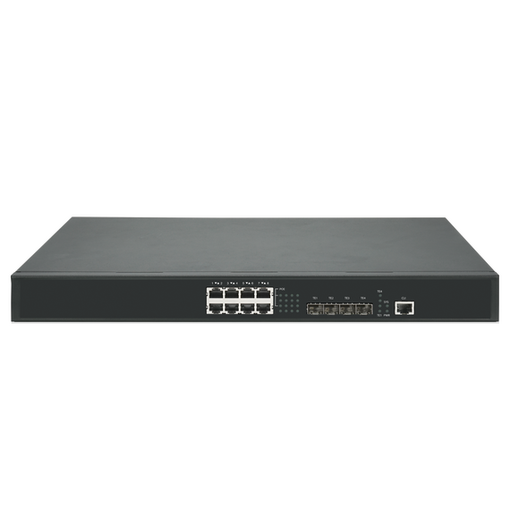 Управляемый коммутатор L3 Gigalink GL-SW-G305-12P PoE, Stack, 8*1/2.5 Гбит/с PoE (8 портов 802.3BT), 4*1/10Гбит/с SFP+, PoE 370Вт
