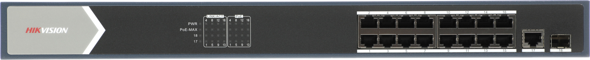 Коммутатор Hikvision DS-3E0518P-E 17x1Гбит/с 1SFP 16PoE+ 230W неуправляемый