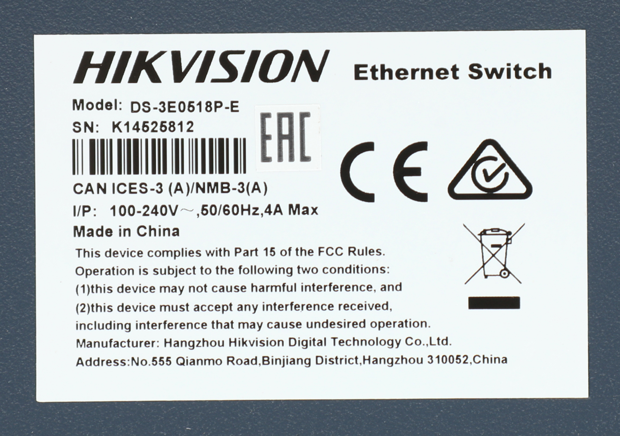 Описание Hikvision DS-3E0518P-E