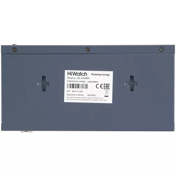 Коммутатор HiWatch DS-S1008GP (L2) 8x100Мбит/с 2x1Гбит/с 1SFP 8PoE 58W неуправляемый