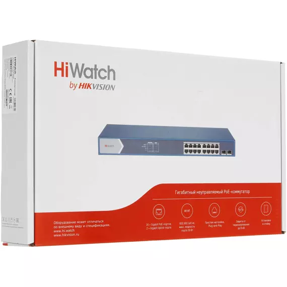 Коммутатор HiWatch DS-S1816GP (L2) 16x100Мбит/с 1x1Гбит/с 16PoE 125W неуправляемый