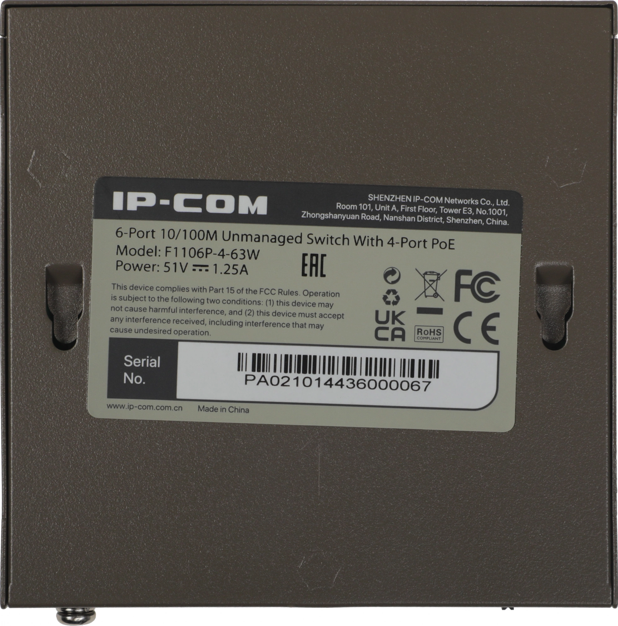 Коммутатор IP-Com F1106P-4-63W (L2) 6x100Мбит/с 4PoE 63W неуправляемый