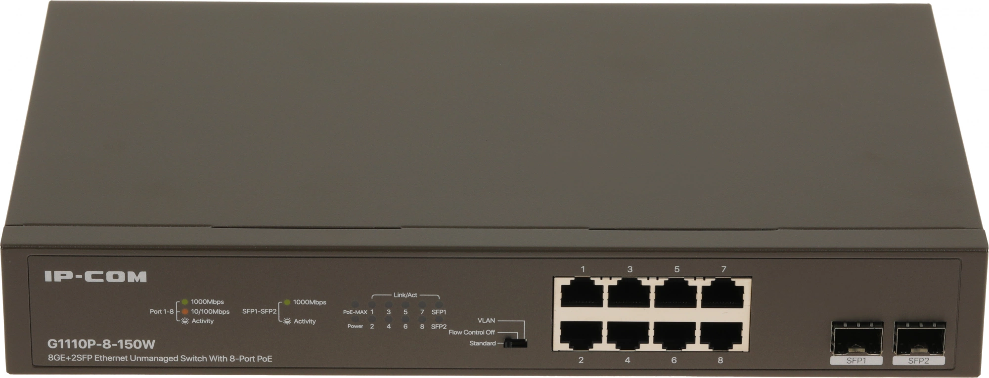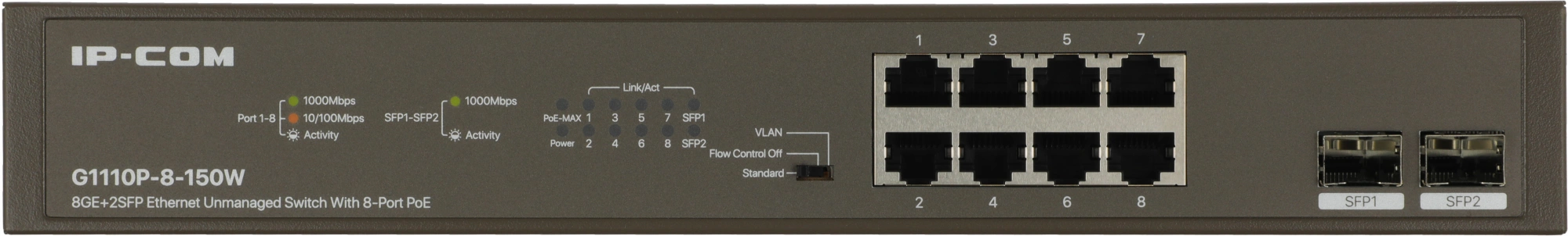 Коммутатор IP-Com G1110P-8-150W (L2) 8x1Гбит/с 2SFP 8PoE 130W неуправляемый