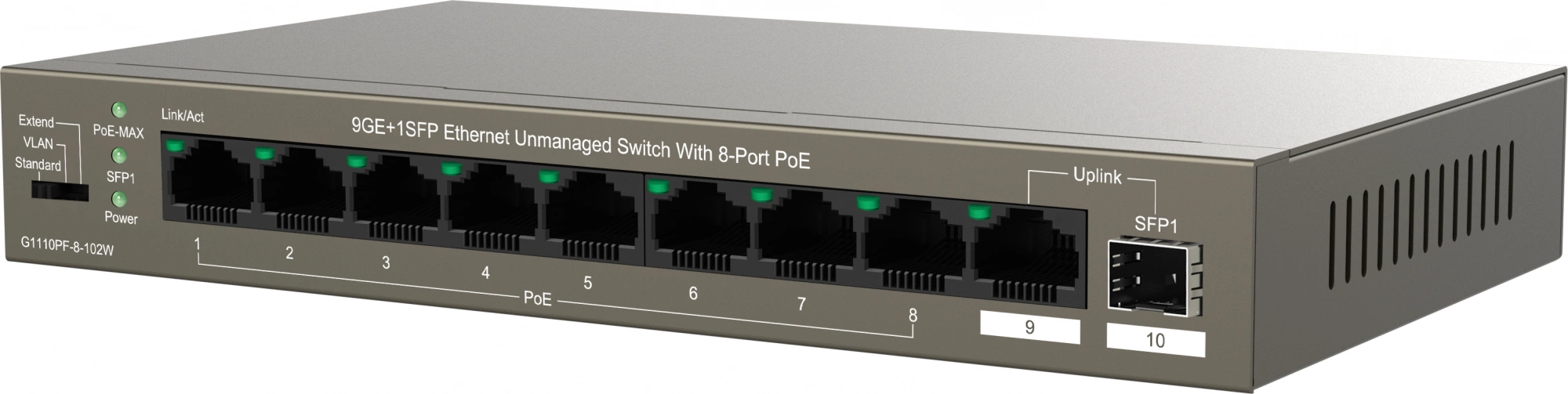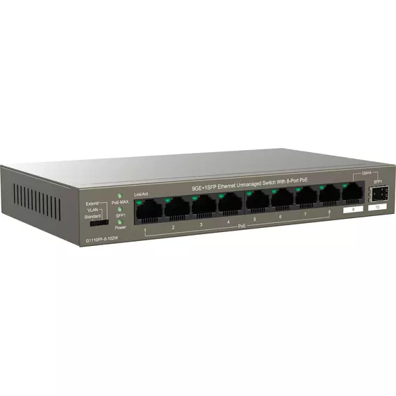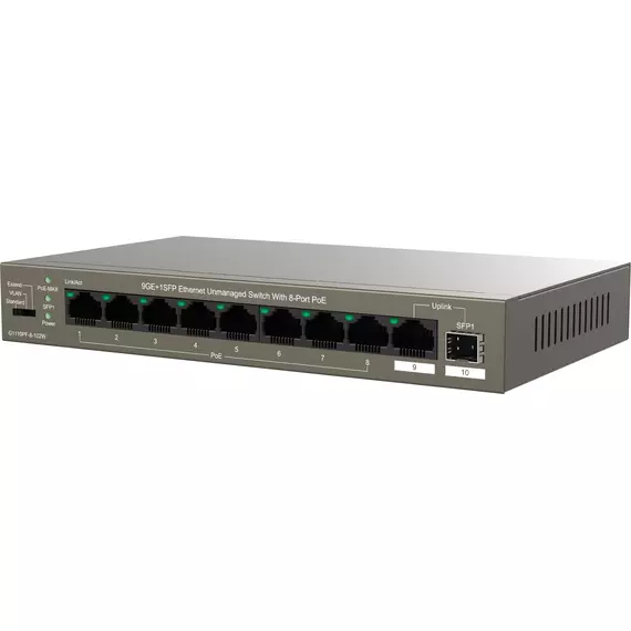 Коммутатор IP-Com G1110PF-8-102W (L2) 9x1Гбит/с 1xКомбо(1000BASE-T/SFP) 1SFP 8PoE 92W неуправляемый