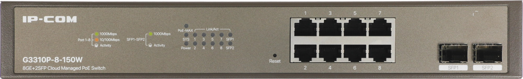 Коммутатор IP-Com G3310P-8-150W (L2) 8x1Гбит/с 2xКомбо(1000BASE-T/SFP) 2SFP 8PoE 130W управляемый