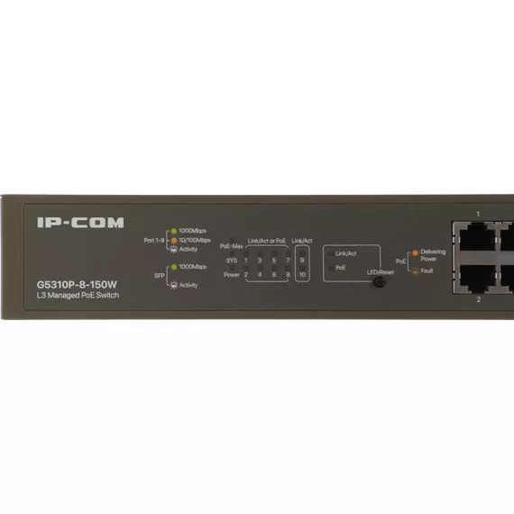 Коммутатор IP-Com G5310P-8-150W (L3) 8x1Гбит/с 1xКомбо(1000BASE-T/SFP) 1SFP 8PoE 130W управляемый