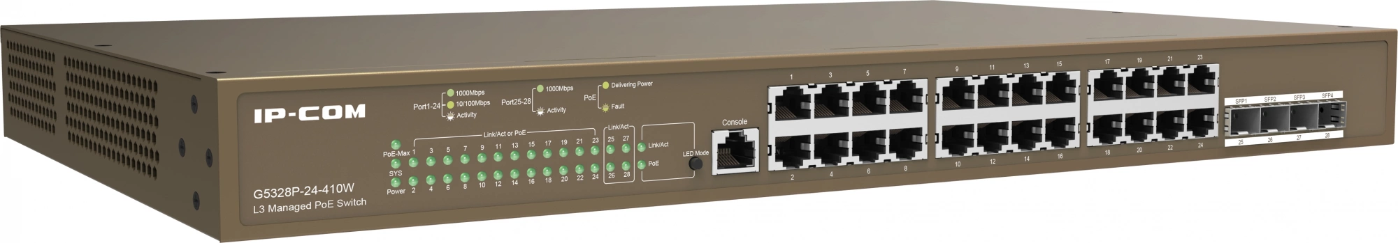 Коммутатор IP-Com G5328P-24-410W (L3) 24x1Гбит/с 4xКомбо(1000BASE-T/SFP) 4SFP 24PoE 370W управляемый