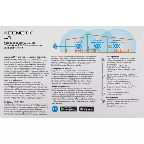 | Особенности | Облачная система удаленного мониторинга и управления, Мобильное приложение для Android и iOS, Командная строка (CLI) по TELNET/SSH, ADSL2+/VDSL2 через Keenetic Plus DSL |
