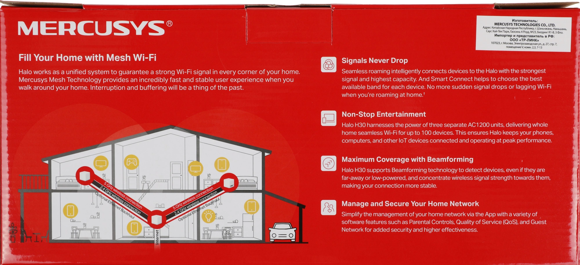 Бесшовный Mesh роутер Mercusys Halo H30(3-pack) AC1200 10/100BASE-TX белый