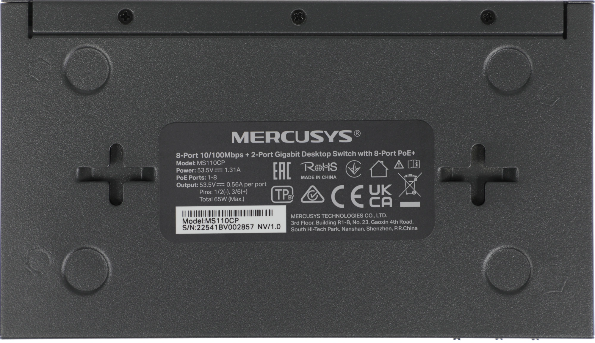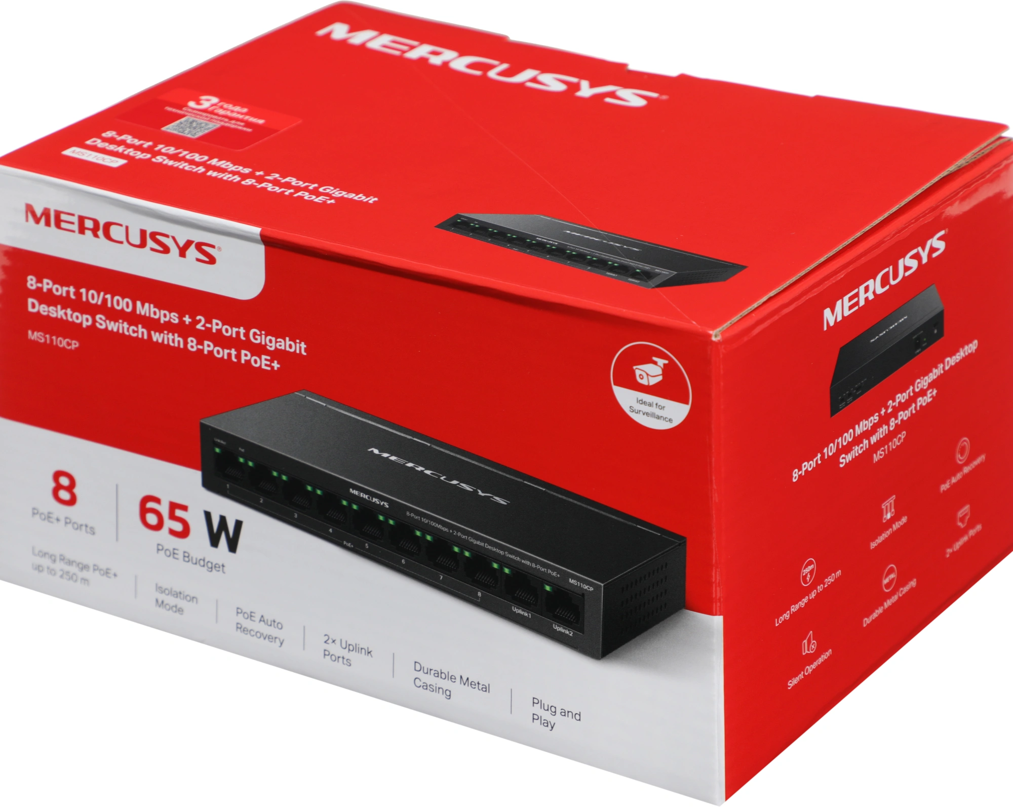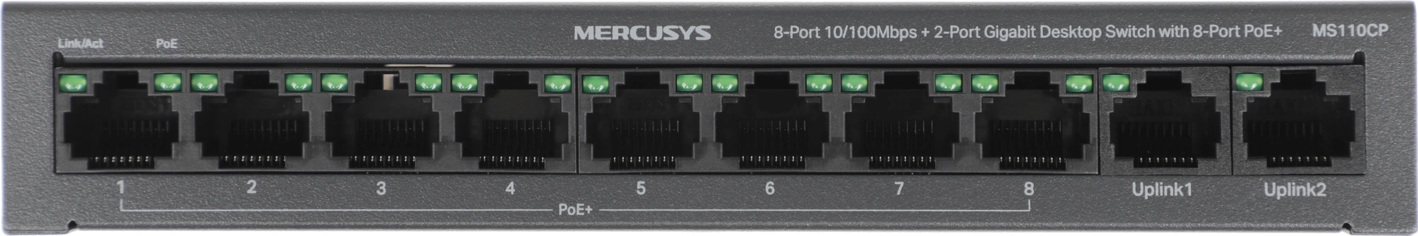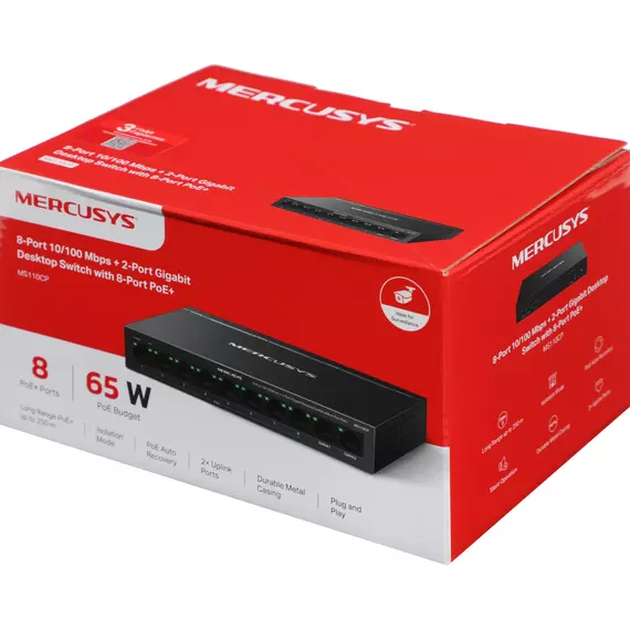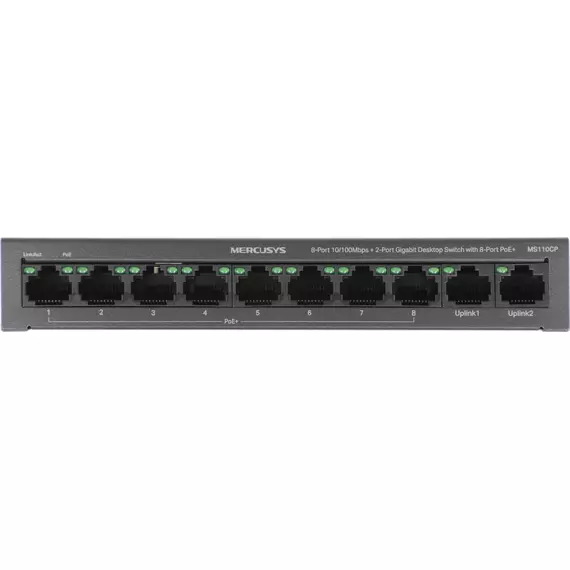 Коммутатор Mercusys MS110CP (L2) 8x100Мбит/с 2x1Гбит/с 8PoE+ 65W неуправляемый