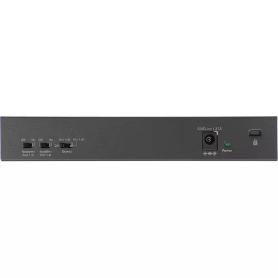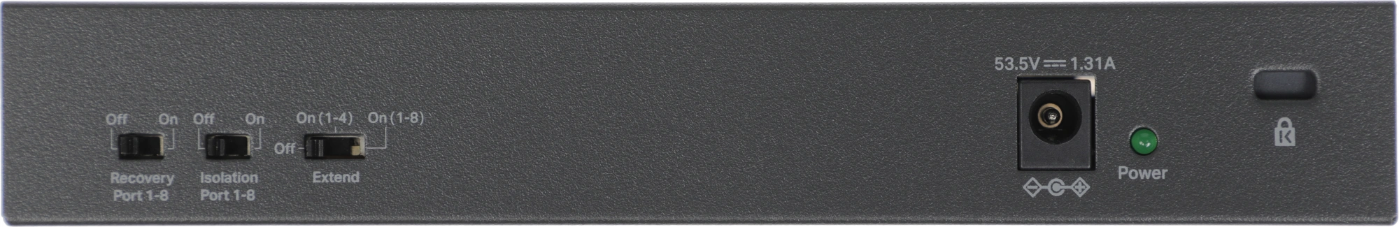 | Особенности | 10 портов: 8 портов PoE+ 10/100 Мбит/c и 2 гигабитных порта без PoE |