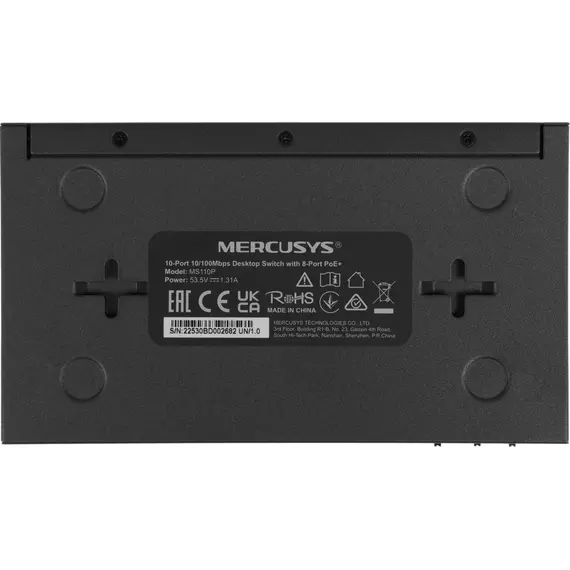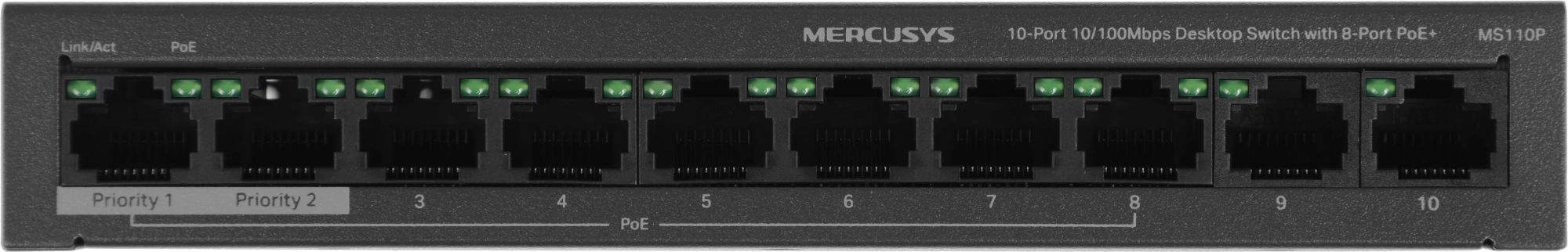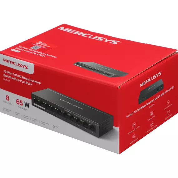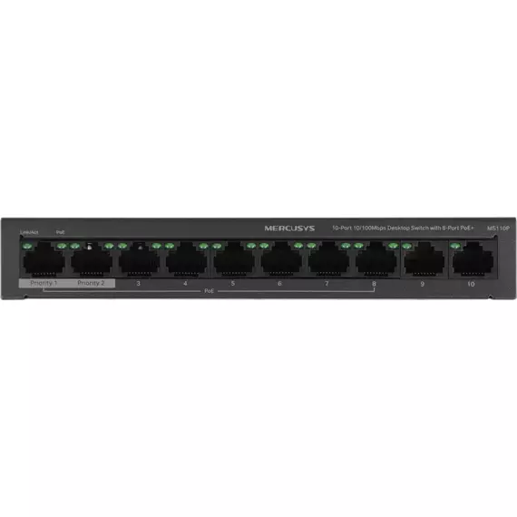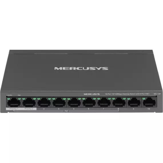 Коммутатор Mercusys MS110P (L2) 10x100Мбит/с 8PoE+ 65W неуправляемый