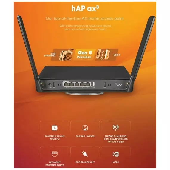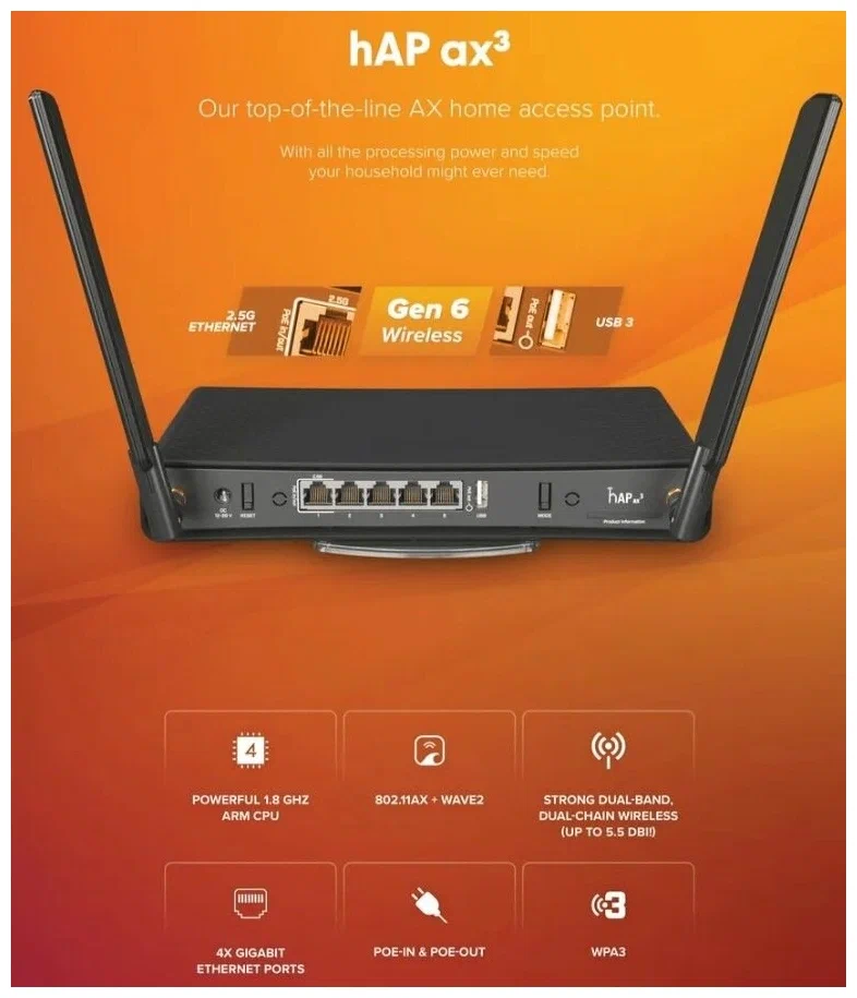 Подводя итог, можно сказать, что hAP ax³ является одним из самых быстрых, безопасных и мощных вариантов домашних точек доступа. Проводной или беспроводной. И он поставляется с самым передовым сетевым программным обеспечением на рынке — RouterOS. В отличие от многих других поставщиков, мы не ограничиваем ваши возможности. Здесь нет платного доступа или запутанных подписок. Все наши устройства используют одну и ту же безграничную операционную систему. Воображение является единственным ограничением.