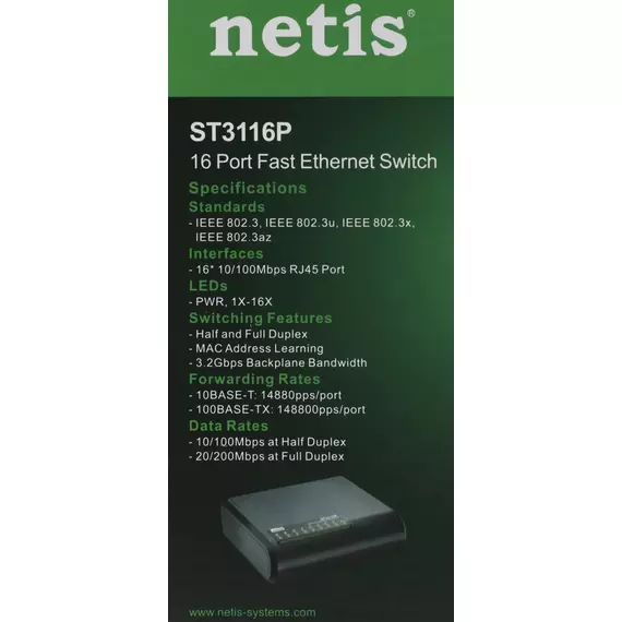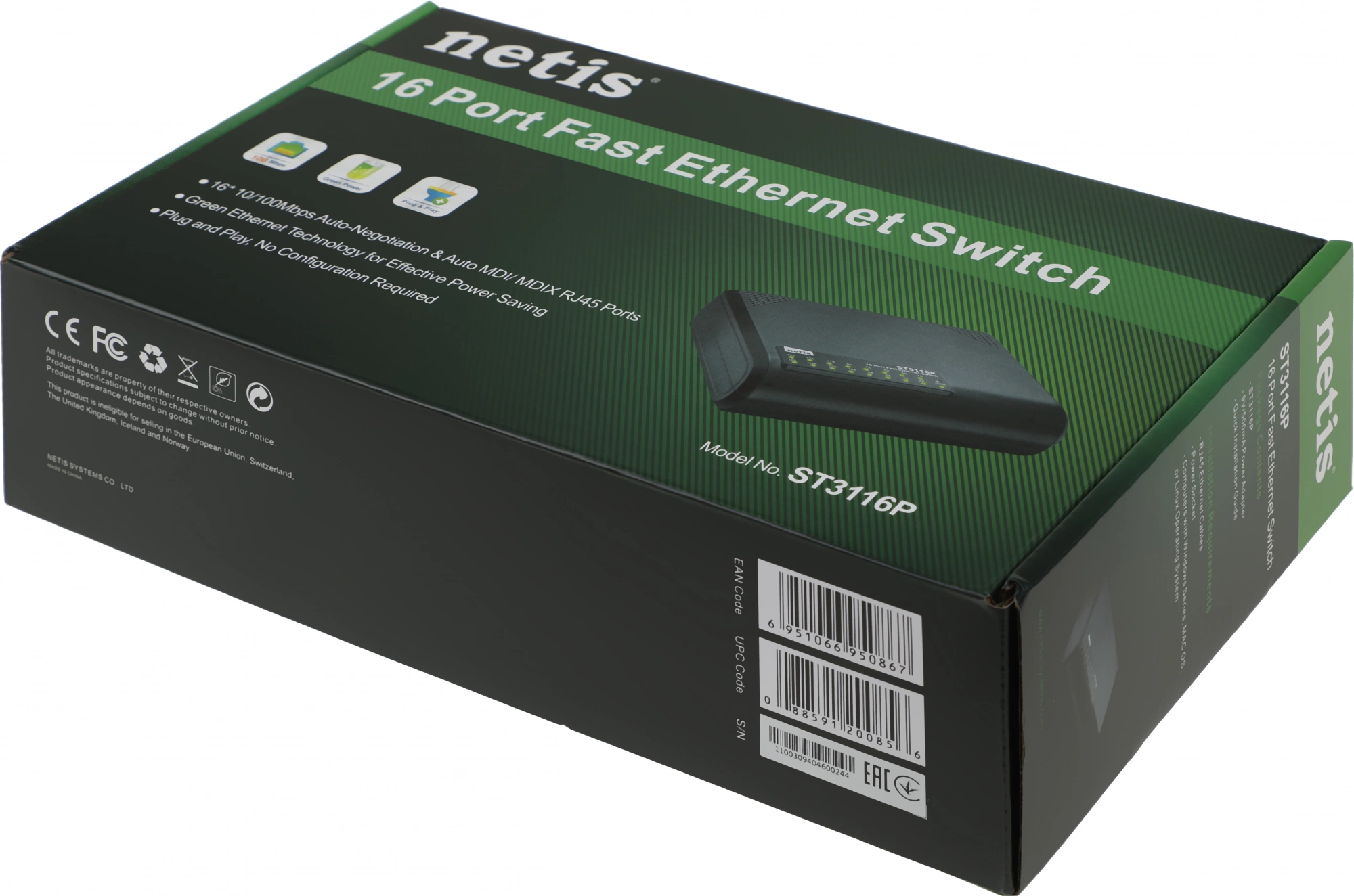 Коммутатор netis ST3116P (L2) 16x100Мбит/с неуправляемый