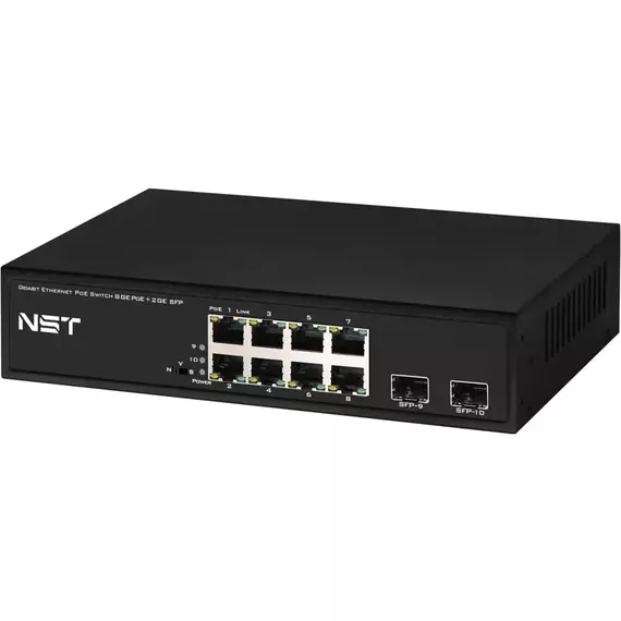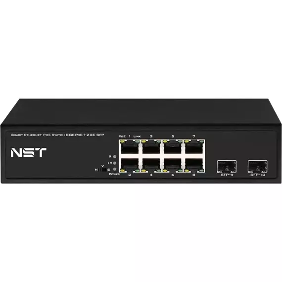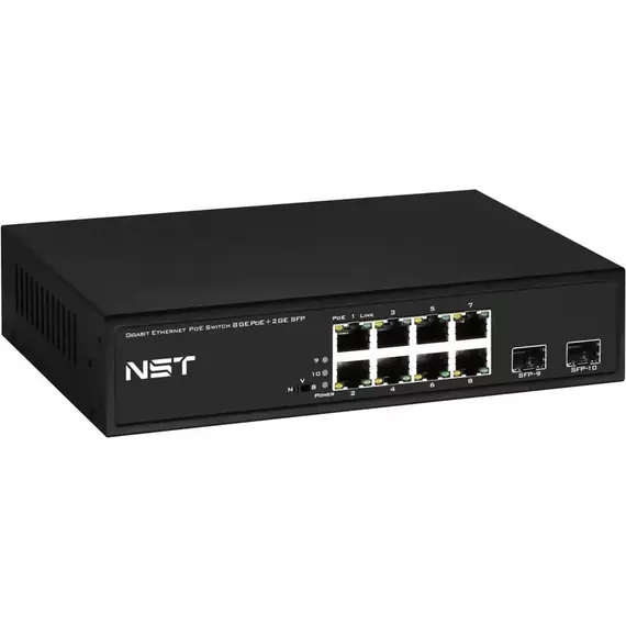 PoE коммутатор NST NS-SW-8G2G-P на 8 RJ45 + 2 SFP порта