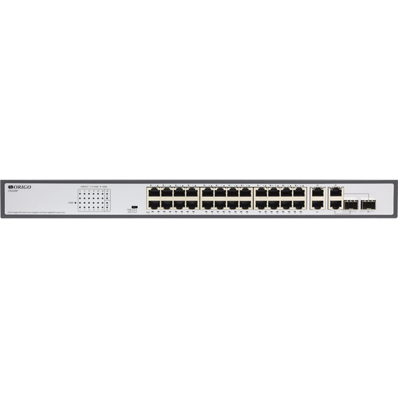 Коммутатор ORIGO OS2228P/370W/A1A Unmanaged Switch 26x1000Base-T (24x1000Base-T PoE), 2xCombo 1000Base-T/SFP, PoE Budget 370W, Long-range PoE up to 250m, 19" w/brackets