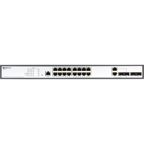 Коммутатор ORIGO OS3120P/250W/A1A Managed L2 Switch 16x1000Base-T PoE, 2x1000Base-X SFP, 2xCombo 1000Base-T/SFP, PoE Budget 250W, RJ45 Console, 19" w/brackets