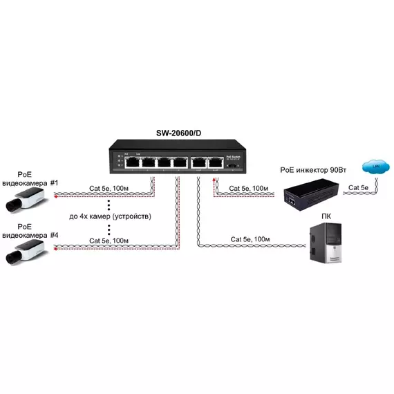| Кол-во портов с поддержкой PoE | 4 |