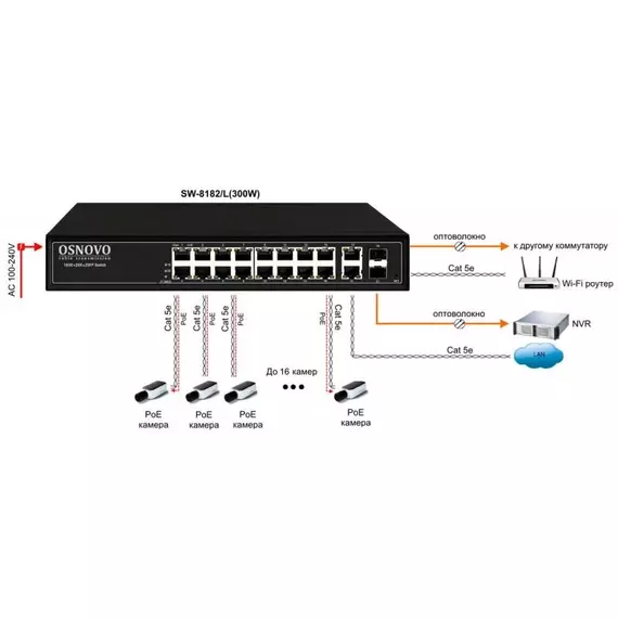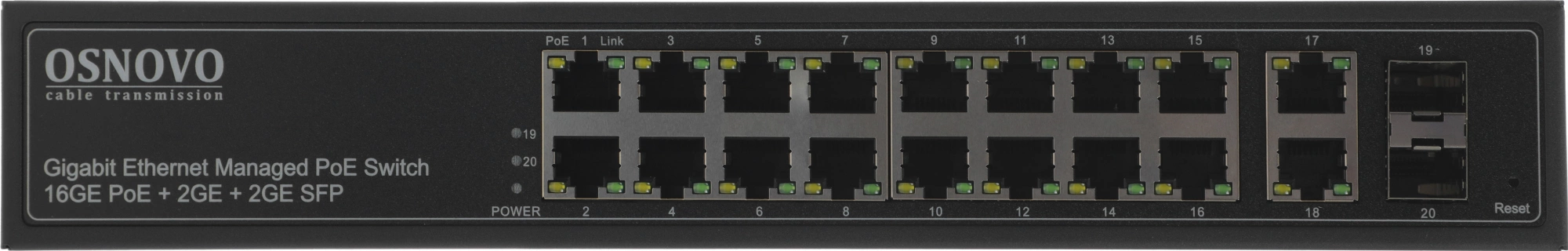 Коммутатор Osnovo SW-8182/L(300W) (L2+) 20x1Гбит/с 2SFP 16PoE 300W управляемый