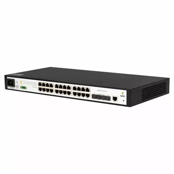 Управляемый коммутатор SNR SNR-S5210G-24TX-UPS L2+, 24 порта 10/100/1000Base-T, 4 порта 1/10G SFP+, встроенный БП ~220V AC, разъем для АКБ 12V с возможностью заряда