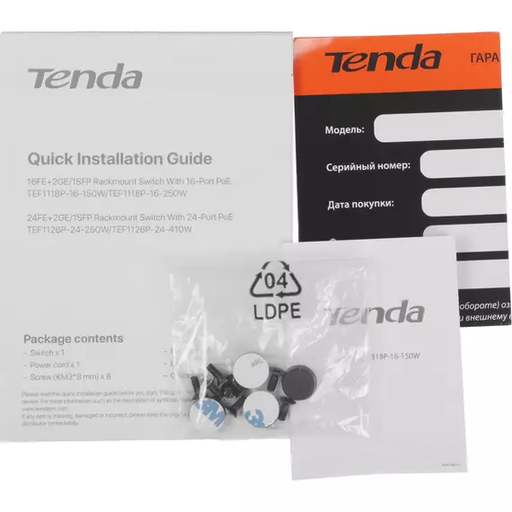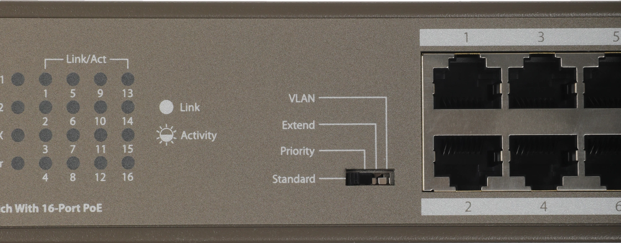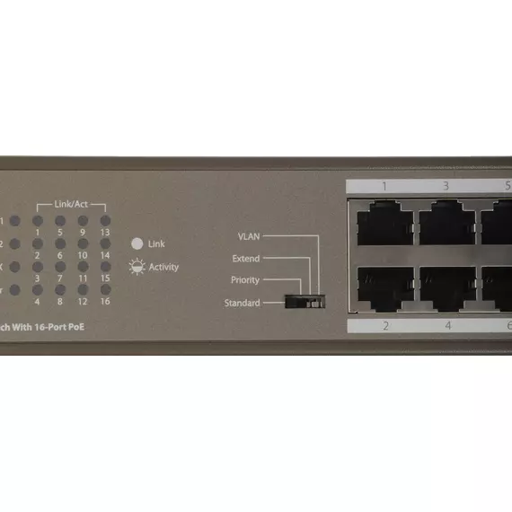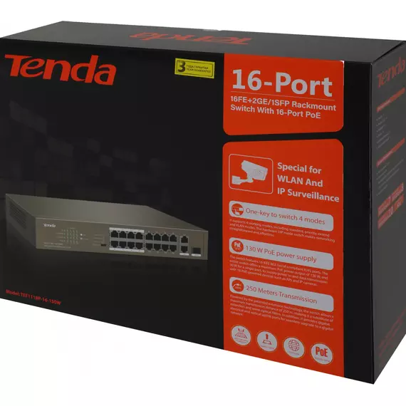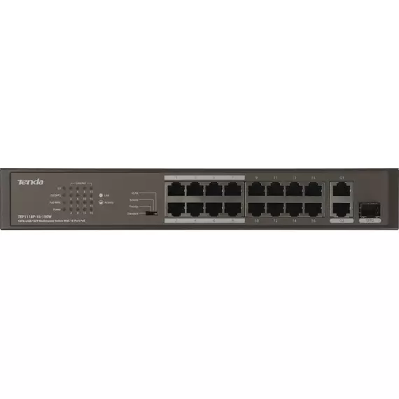 Коммутатор TENDA TEF1118P-16-150W (L2) 16x100Мбит/с 2x1Гбит/с 1SFP 16PoE 130W неуправляемый