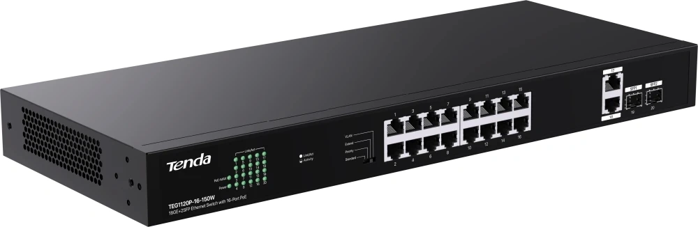 Коммутатор TENDA TEG1120P-16-150W (L2) 16x1Гбит/с 2SFP 16PoE 135W неуправляемый