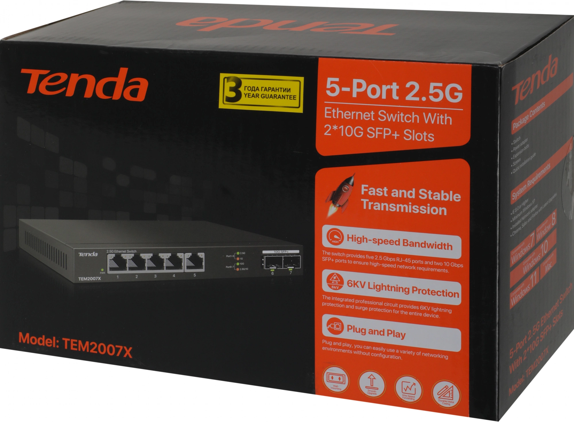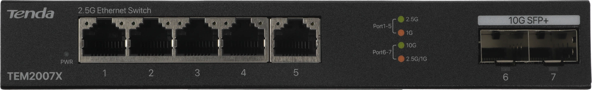 Коммутатор TENDA TEM2007X (L2) 5x2.5Гбит/с 2SFP+ неуправляемый