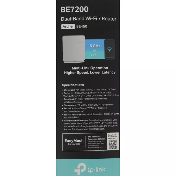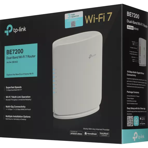 | Комплектация | Маршрутизатор TP-Link Archer BE450, адаптер питания, кабель Ethernet RJ45, руководство по быстрой установке. |