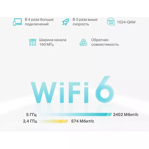 Скорость 802.11ax, 2.4 ГГц574 Мбит/с