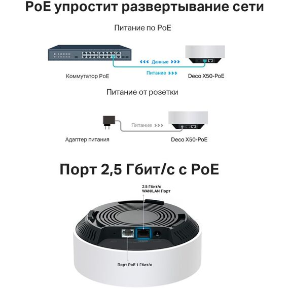 Бесшовный Mesh роутер TP-Link Deco X50-PoE(1-pack) AX3000 1000/2500BASE-T белый