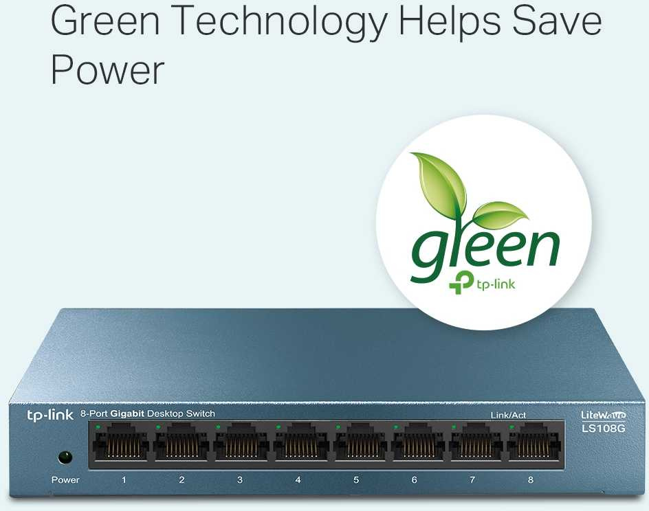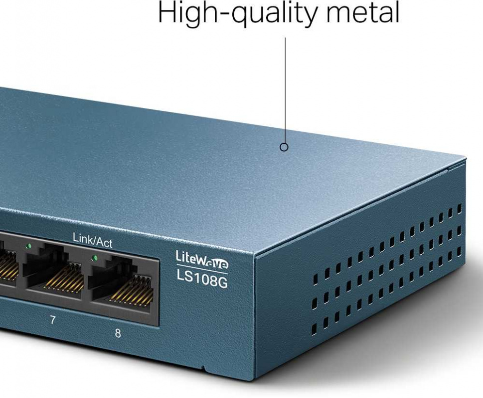 Коммутатор TP-Link LS108G Unmanagement, 8х10/100/1000Mbps RJ-45 ports, metal shell, desktop and wall mountable