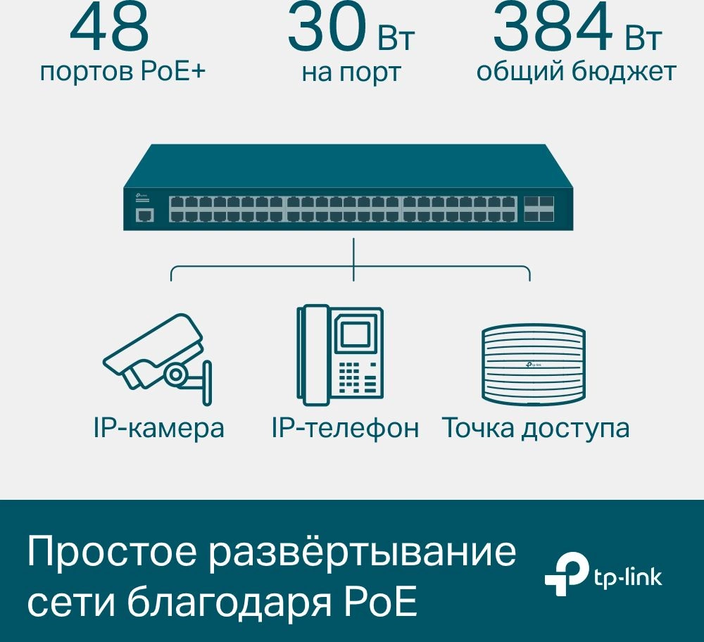 Коммутатор TP-Link SG3452P (L2+) 48x1Гбит/с 4SFP 48PoE+ 384W управляемый