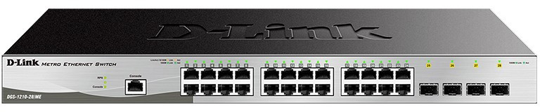 Коммутатор DGS-1210-28/ME является идеальным решением для применения в сетях Metro Ethernet. Данный коммутатор оснащен 24 портами 10/100/1000Base-T для подключения по витой паре, а также 4 SFP-портами, применяемыми для организации подключения к высокоскоростной магистрали. Защита от статического электричества 6 кВ обеспечивает устойчивость к скачкам напряжения, а полный набор функций безопасности и аутентификации защищает сеть от внутренних и внешних угроз. DGS-1210-28/ME поддерживает Auto Voice VLAN, обеспечивая максимальный приоритет для «голосового» трафика