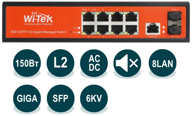 Управляемый гигабитный L2 коммутатор Wi-Tek WI-PMS310GF