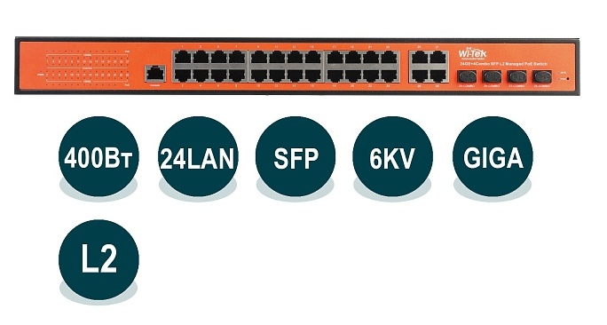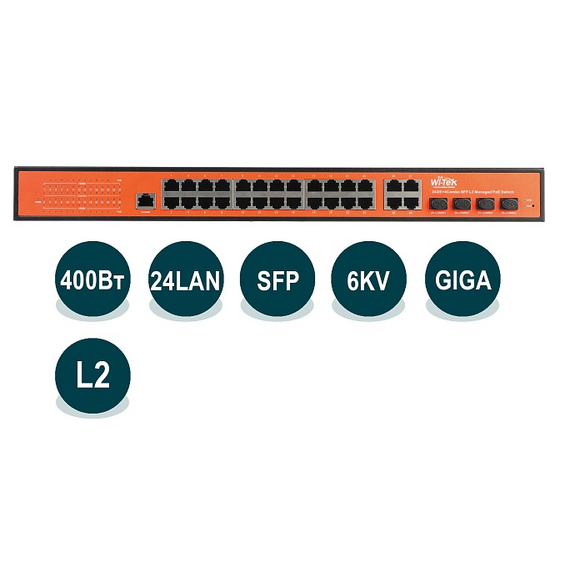 Управляемый гигабитный L2 коммутатор Wi-Tek WI-PMS328GF