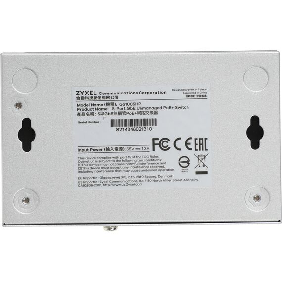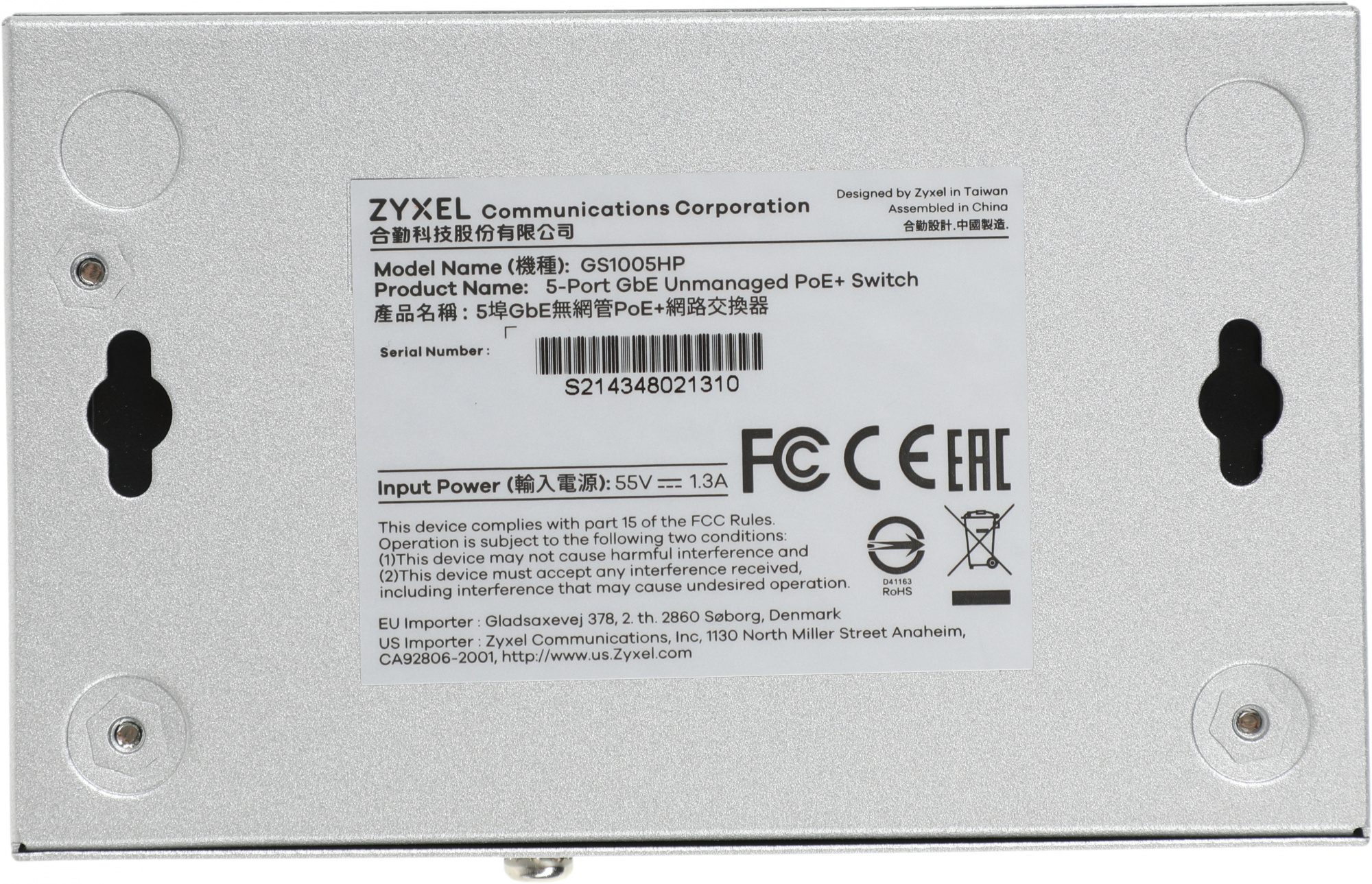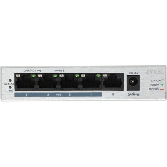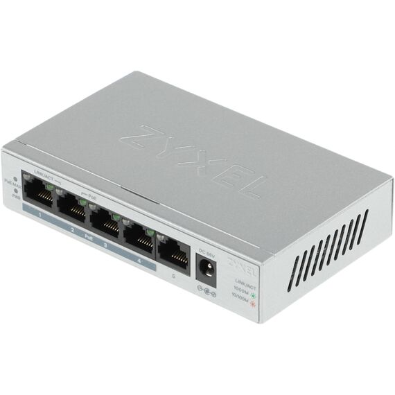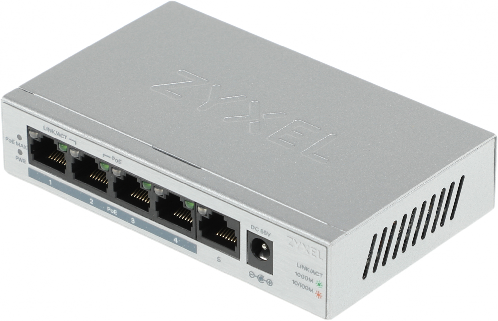 Коммутатор ZyXEL GS1005HP-EU0101F (L2) 5x1Гбит/с 4PoE+ 60W неуправляемый