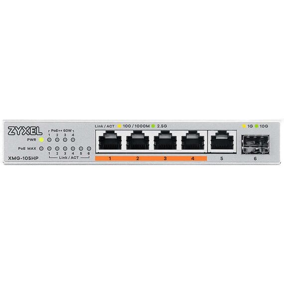 Коммутатор ZyXEL XMG-105HP-EU0101F (L2) 5x2.5Гбит/с 1SFP+ 4PoE++ 70W неуправляемый