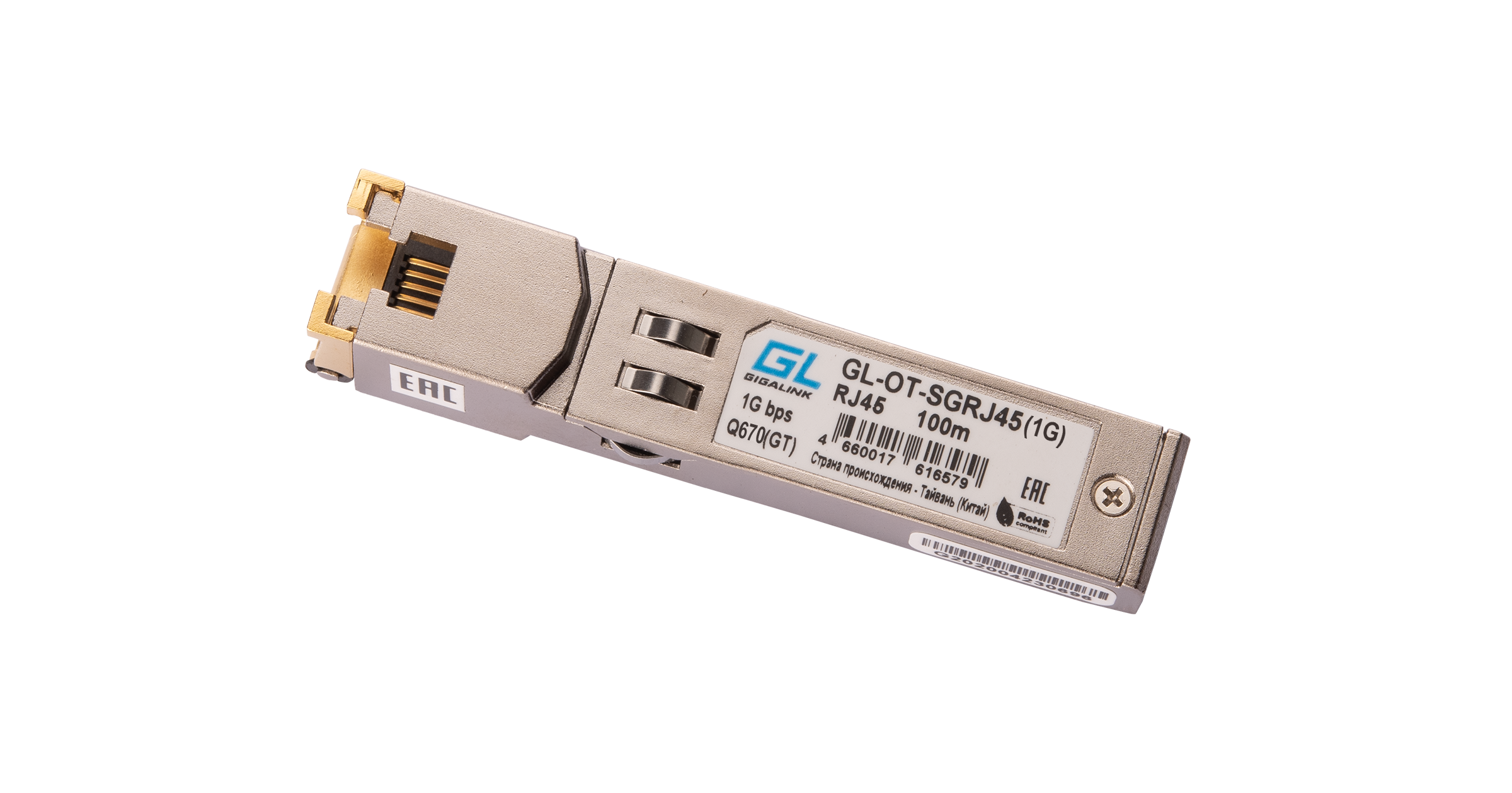 GL-OT-SGRJ45(1G) представляет собой UTP-модуль с разъемом типа RJ-45 и форм-фактор SFP. Дальность действия модели достигает 100 м., скорость передачи данных составляет 1000 Мбит/с. Конструкция трансиверов позволяет производить «горячую» замену - замена или добавление нового трансивера может быть произведена во время работы коммутатора без отключения локальной сети.