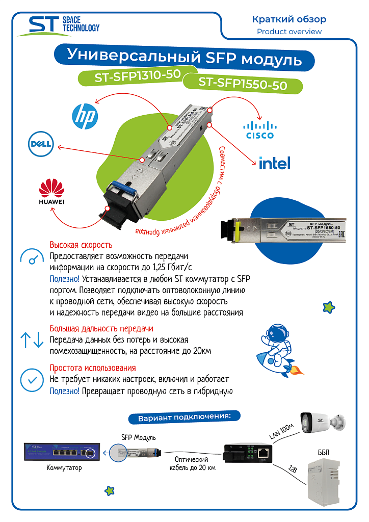 Особенности ST ST-SFP1310-50 (20/G/SC/SM)