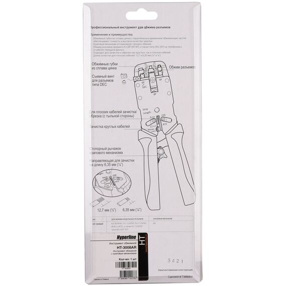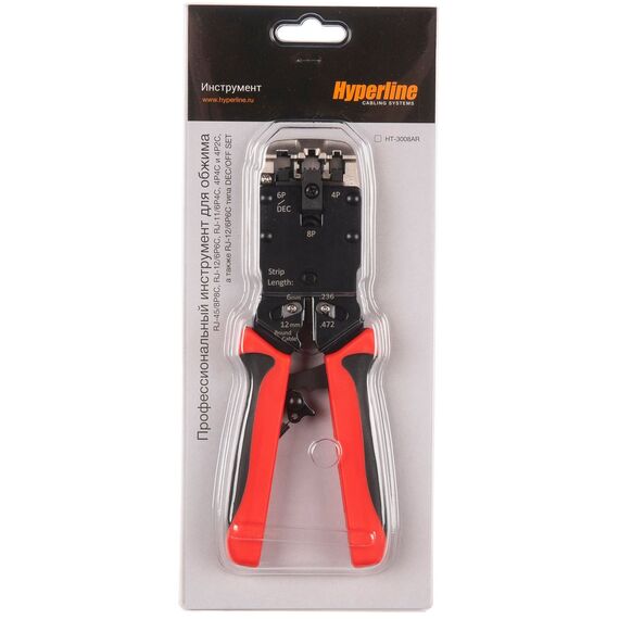 Инструмент обжимной Hyperline HT-3008AR для RJ-45/RJ-12/RJ-11 черный/красный