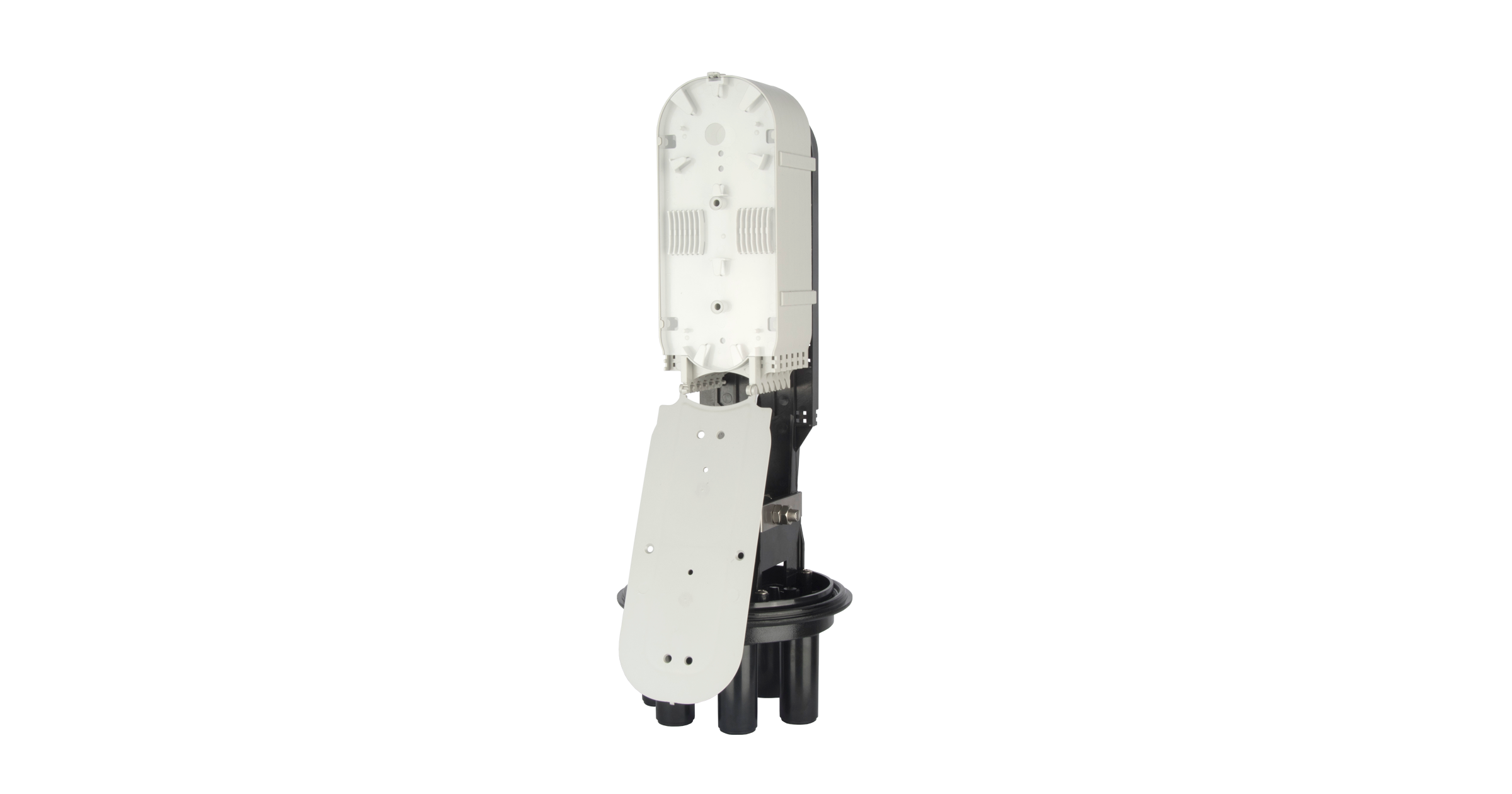 Внутри муфты можно установить до четырех сплайс-кассет из прочного пластика. Конструкция кассет позволяет легко и компактно расположить сростки, исключая при этом скрутки и недопустимые изгибы оптических волокон.